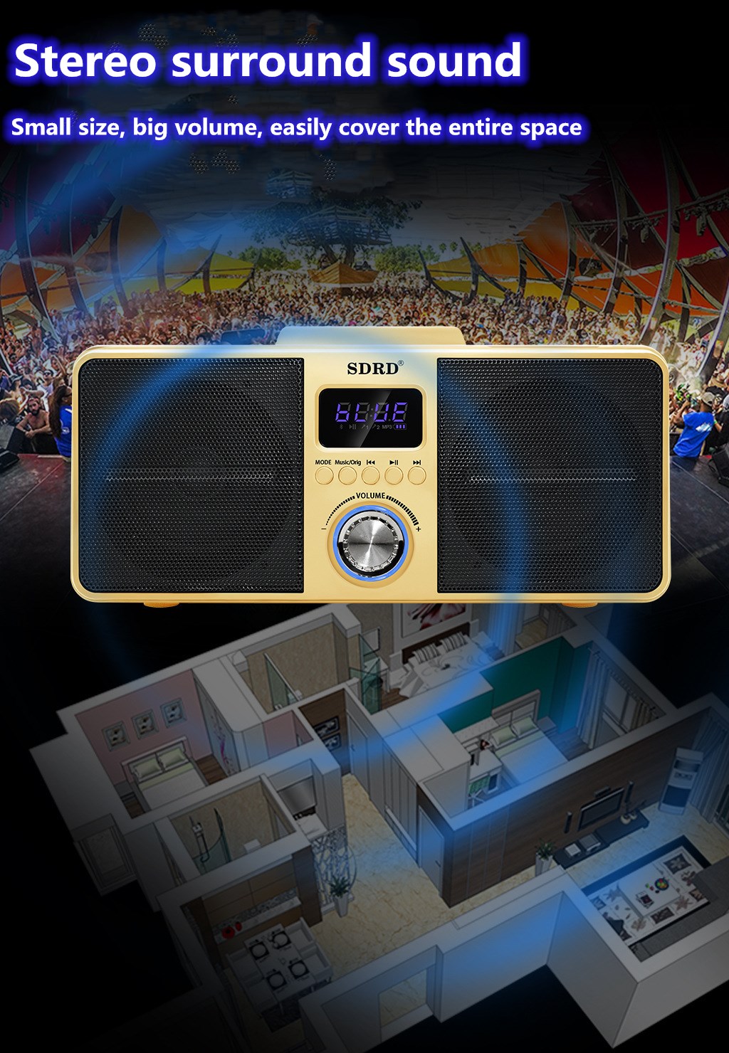【Singapore Supplier】SD309 HOME KTV Dual Wireless Microphone Bluetooth Wireless Stereo All-in-one Speaker Mobile Wireless Karaoke Speaker 30W SDRD Speaker Set Support Wireless Recording Connection to T