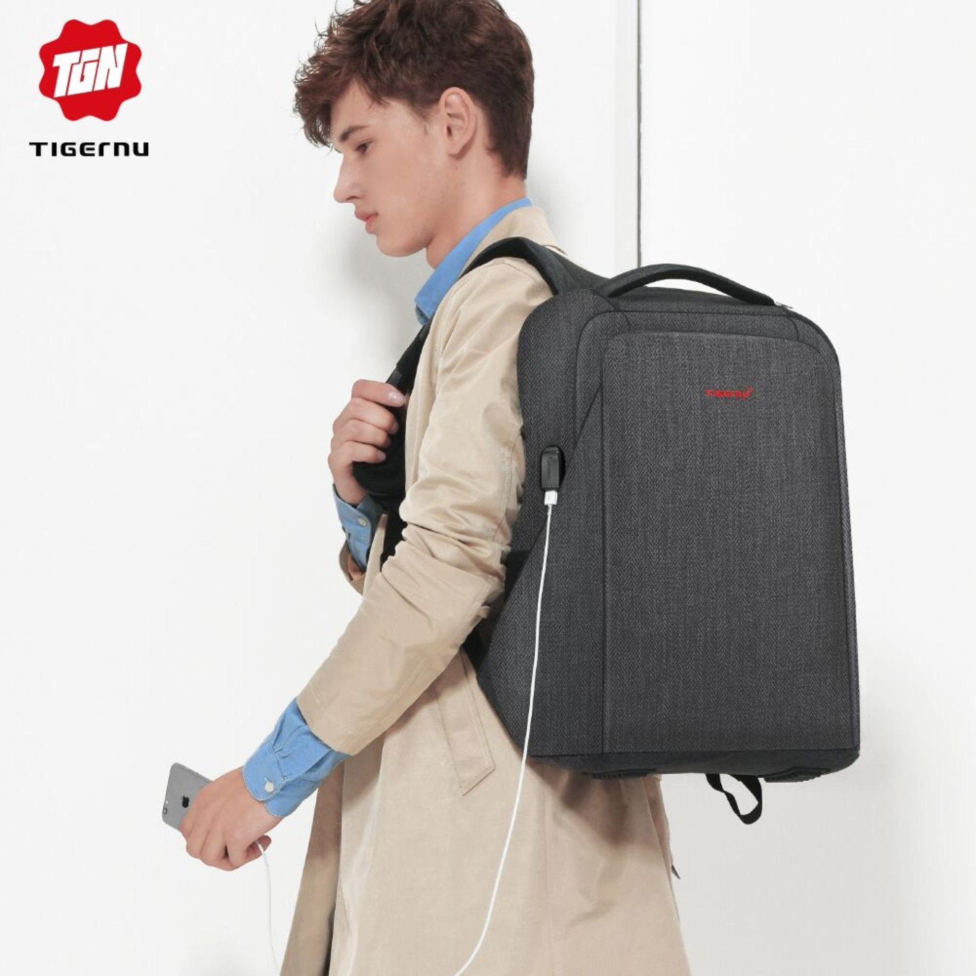 Anti theft backpack Tigernu New Design Anti-theft Waterproof Laptop Backpack Fanshion Men Bags USB Charging Port Business Backpack for Men - intl