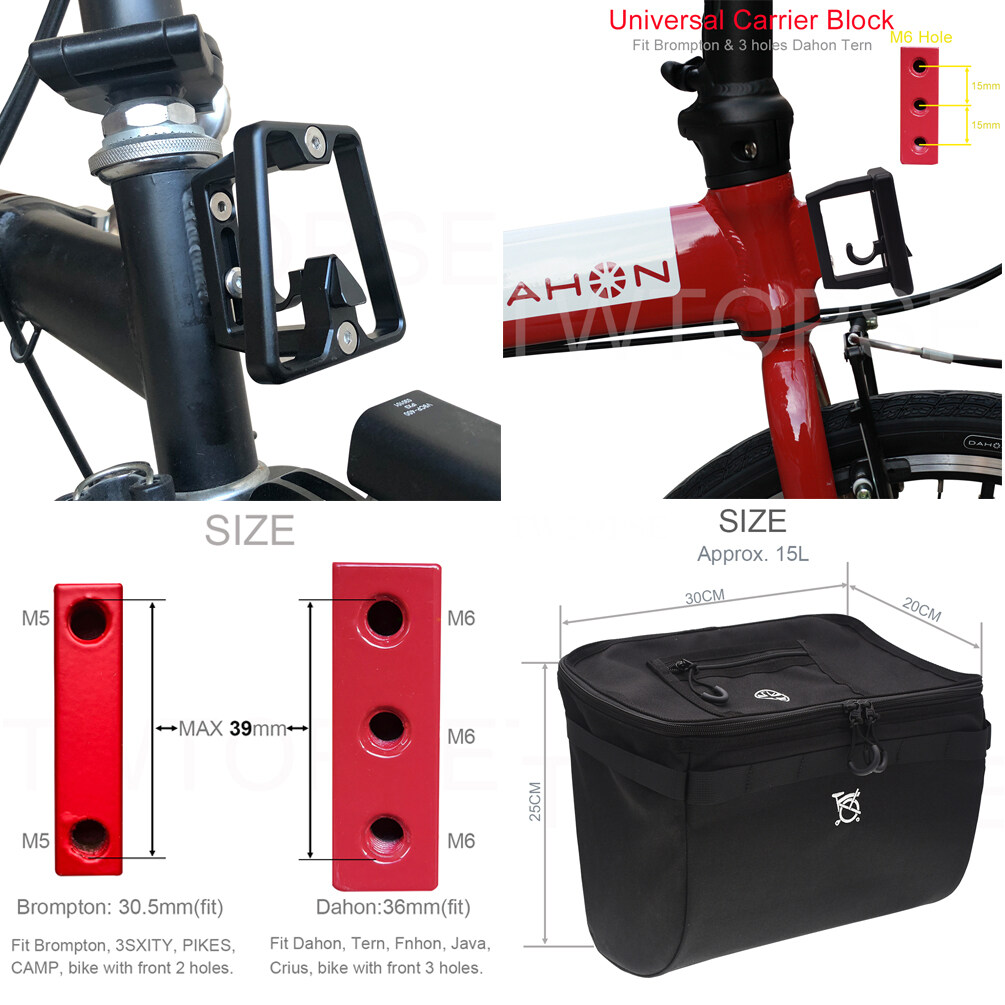 3. The "Basket with Universal Carrier Block" option: it fit Brompton, 3SIXTY, PIKES and fit 3 hole DAHON, 3 Hole Tern, 3 hole Fnhon, 3 hole Crius.