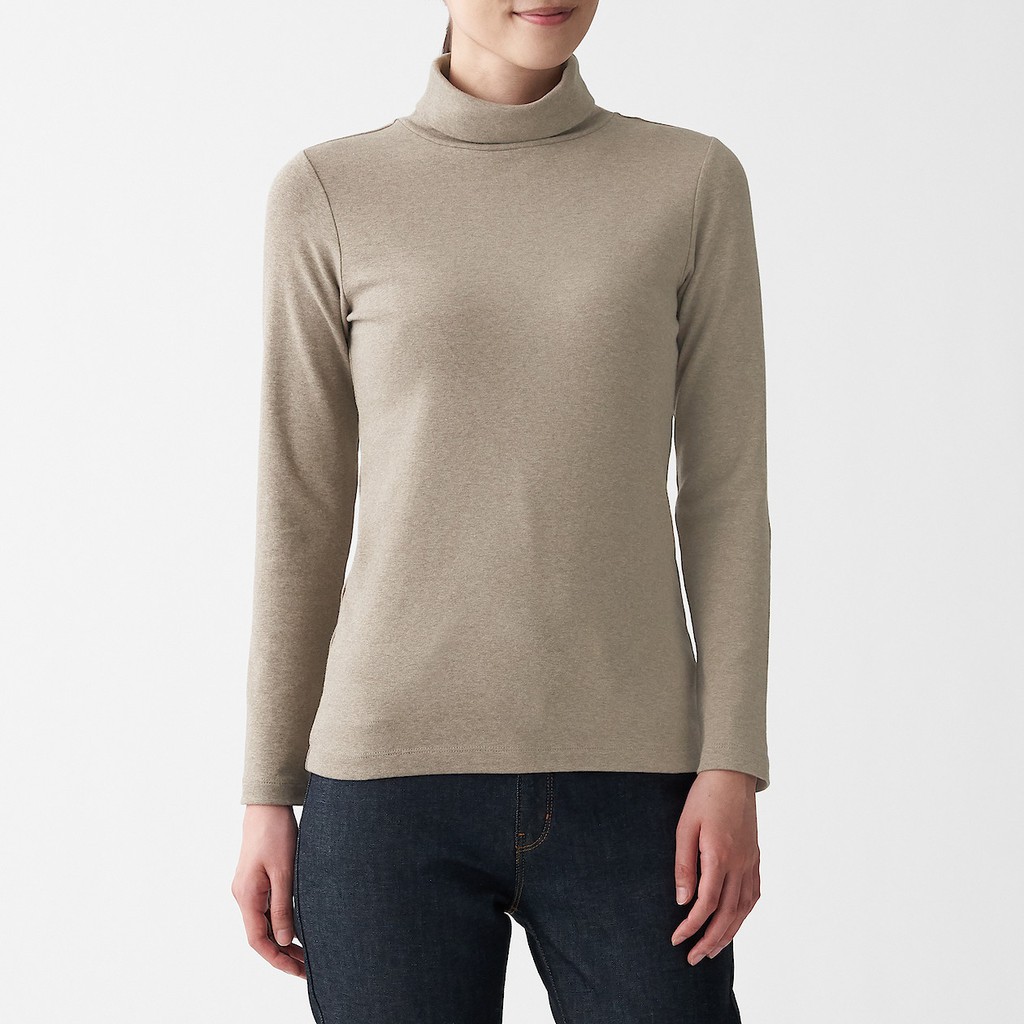 MUJI Stretch Rib Knit Turtle Neck Long Sleeve T-Shirt