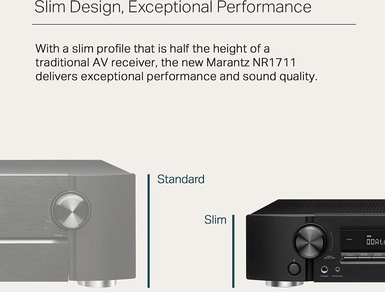 • Sleek design, extraordinary performance: With the slim profile that is half the standard AVR, the new NR1711 delivers exceptional performance and sound quality
