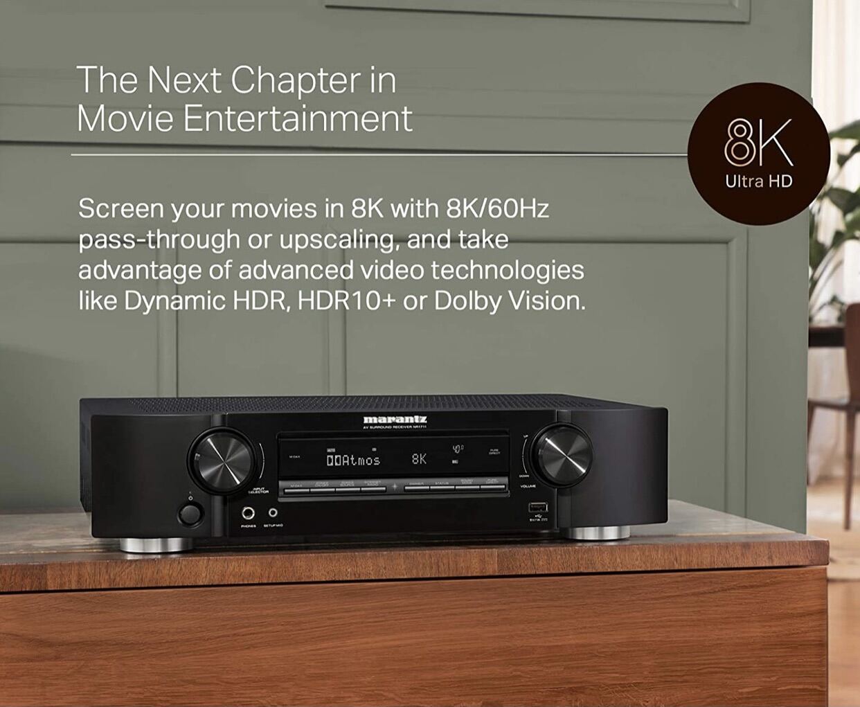 Marantz NR1711/N1B 7.2 Channel 8K Ultra HD AV Receiver with Built-In HEOS, Black