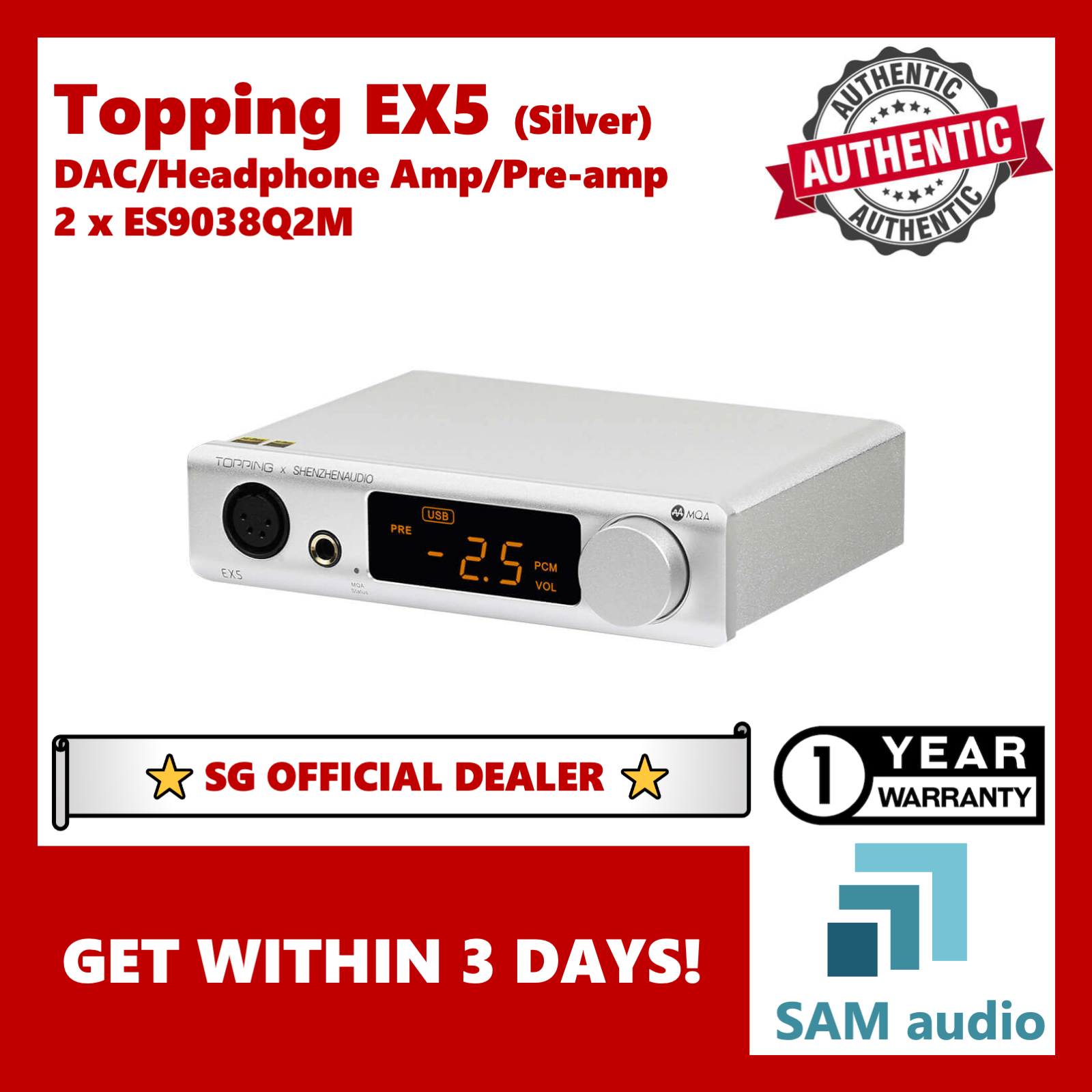 [SG] Topping EX5, Dual ES9038Q2M DAC, Headphone Amplifier, Pre-amp, MQA, Bluetooth LDAC, Hifi Audio