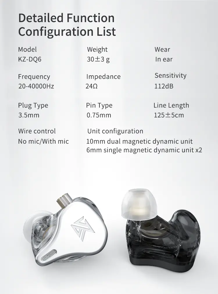 >Different colours and different choices - The DQ6 features a Zinc alloy face cover and fully transparent ear shells, to show the beauty of the science and technology in them, while still having a stylish and clean aesthetic.