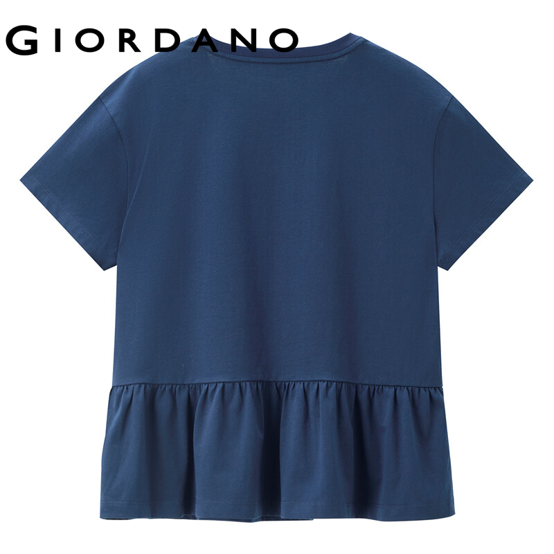 GIORDANO Women T-Shirts Drop Shoulder Ruffle Hem 100% Cotton Casual T-Shirts Loose Summer Simple Short Sleeve Basic Tee 13322212