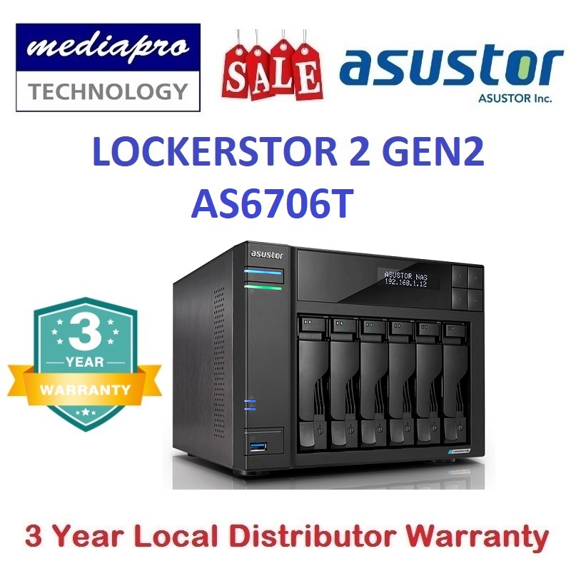 ASUSTOR AS6706T 6-Bay Lockerstor Gen 2 NAS with 2.5-Gigabit Ethernet (Without HDD) - 3 Year Local Distributor Warranty