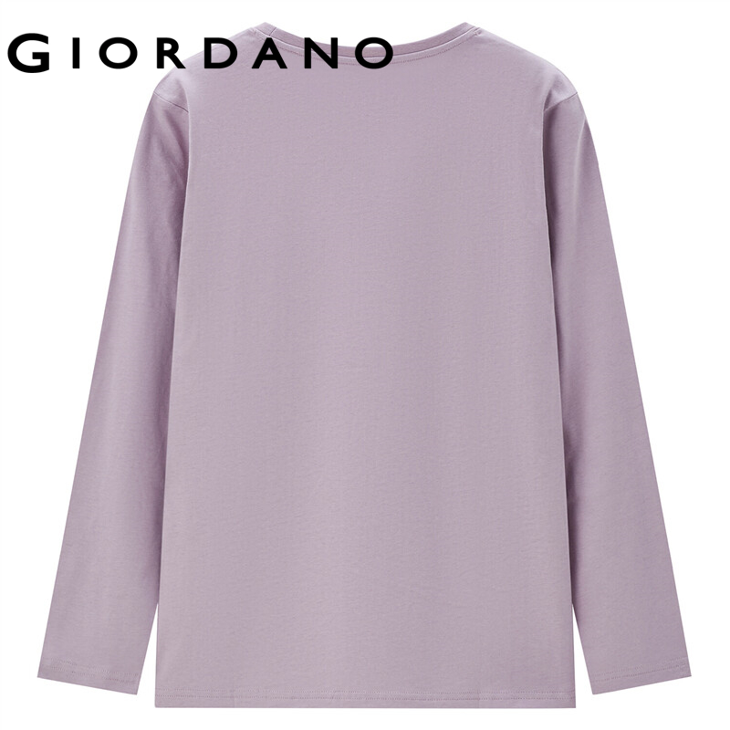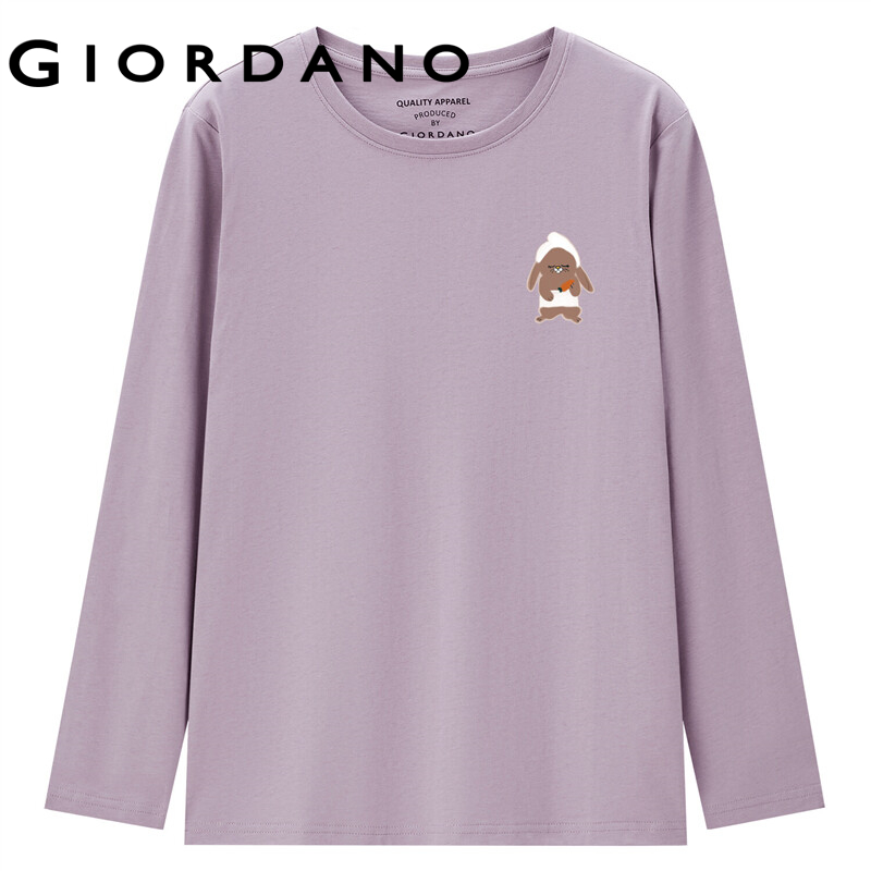 GIORDANO Women ZITA Series T-Shirts Print Rabbit Pattern 100% Cotton Casual T-Shirts Long Sleeve Crewneck Simple Tee 99392144