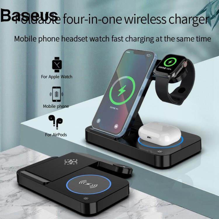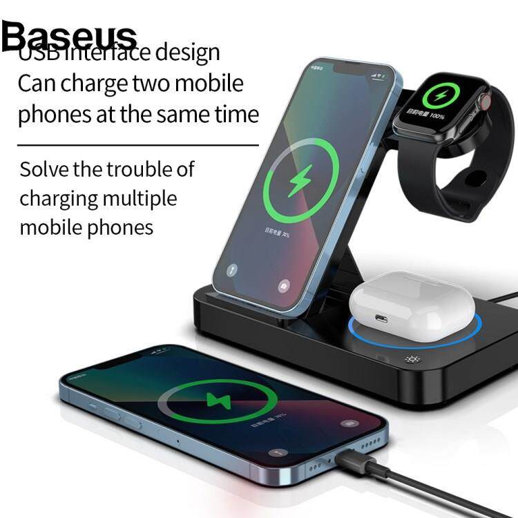 Baseus B-18 4 in 1 Folding Charging Dock Magnetic Wireless Charger with USB Output for Smartphone / Smart Watch / Earphones