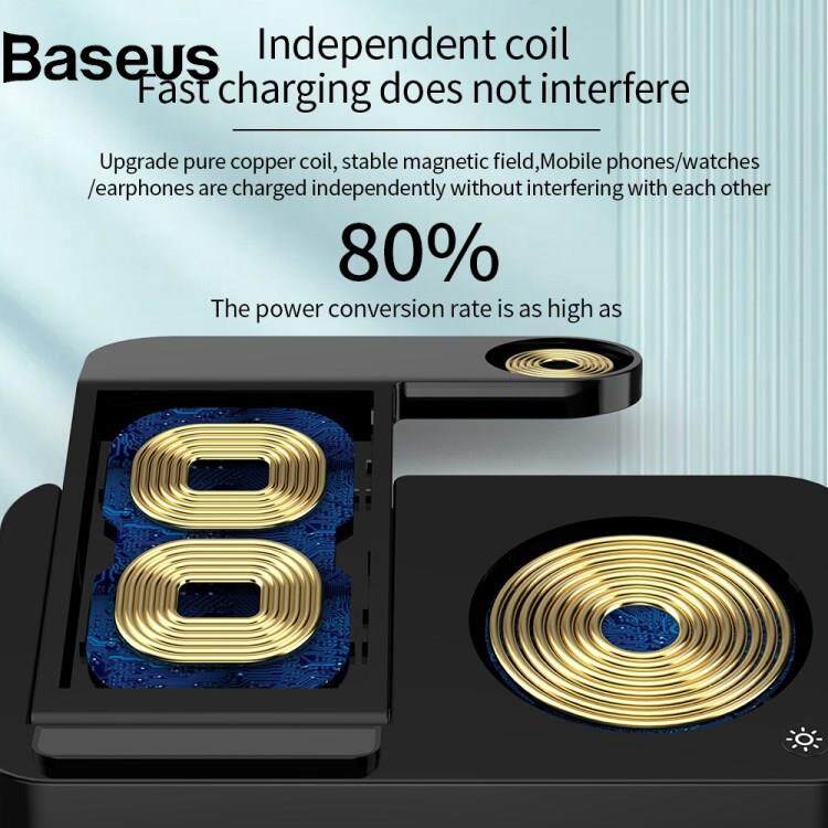Baseus JJT-980 Desktop Charging Stand 3 in 1 Detachable Magnetic Wireless Charger for iPhone / Apple Watch / Earphones