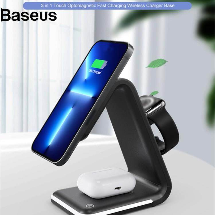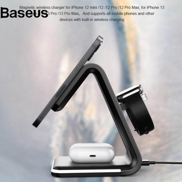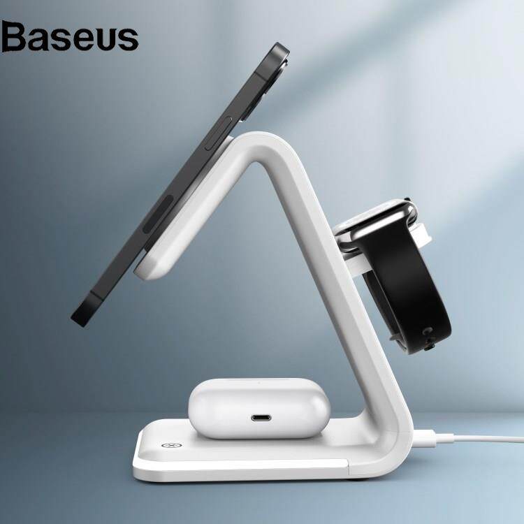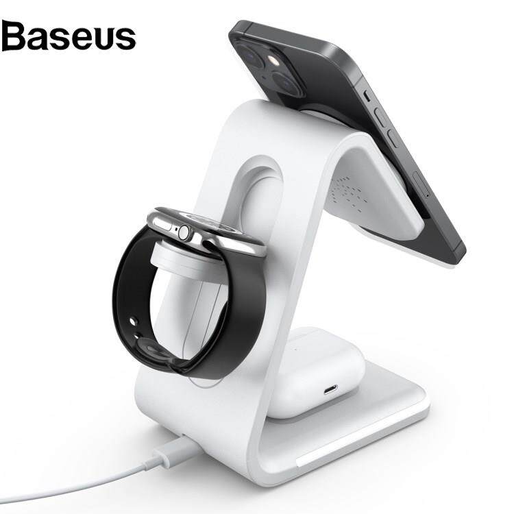 Baseus B-17 3 in 1 for Smartphone / Smart Watch / Earphones 15W Magnetic Wireless Charger Stand Desktop Cradle