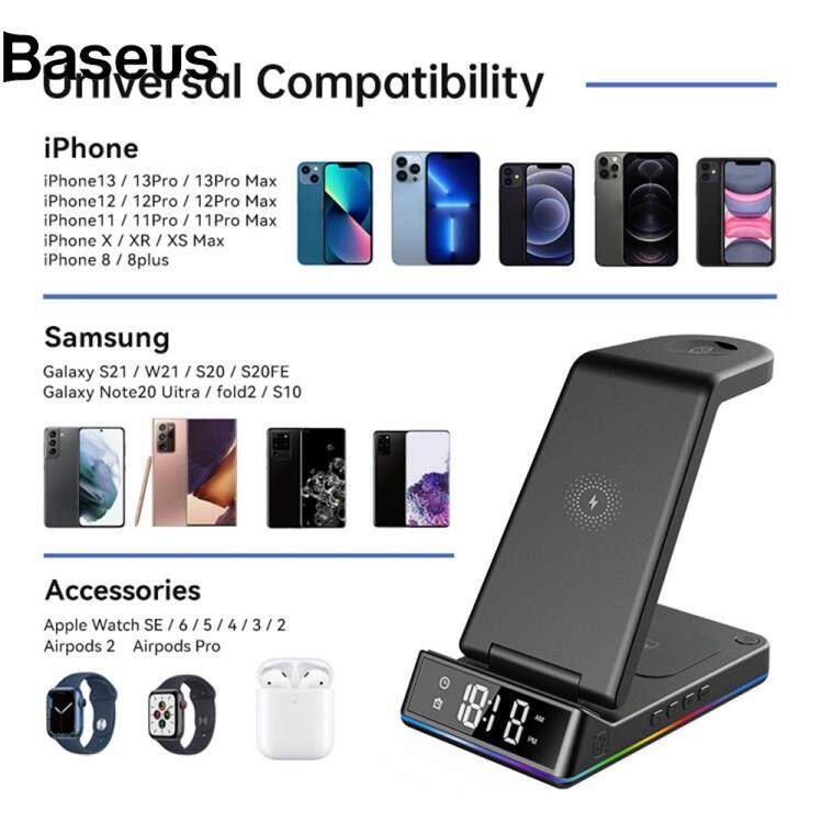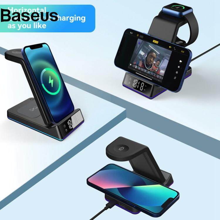 Baseus Z6 Foldable 5-in-1 15W Magnetic Wireless Charger with Flashy Atmosphere Light/Digital Clock Multi-Function Wireless Charging Stand?24hrs ship out?