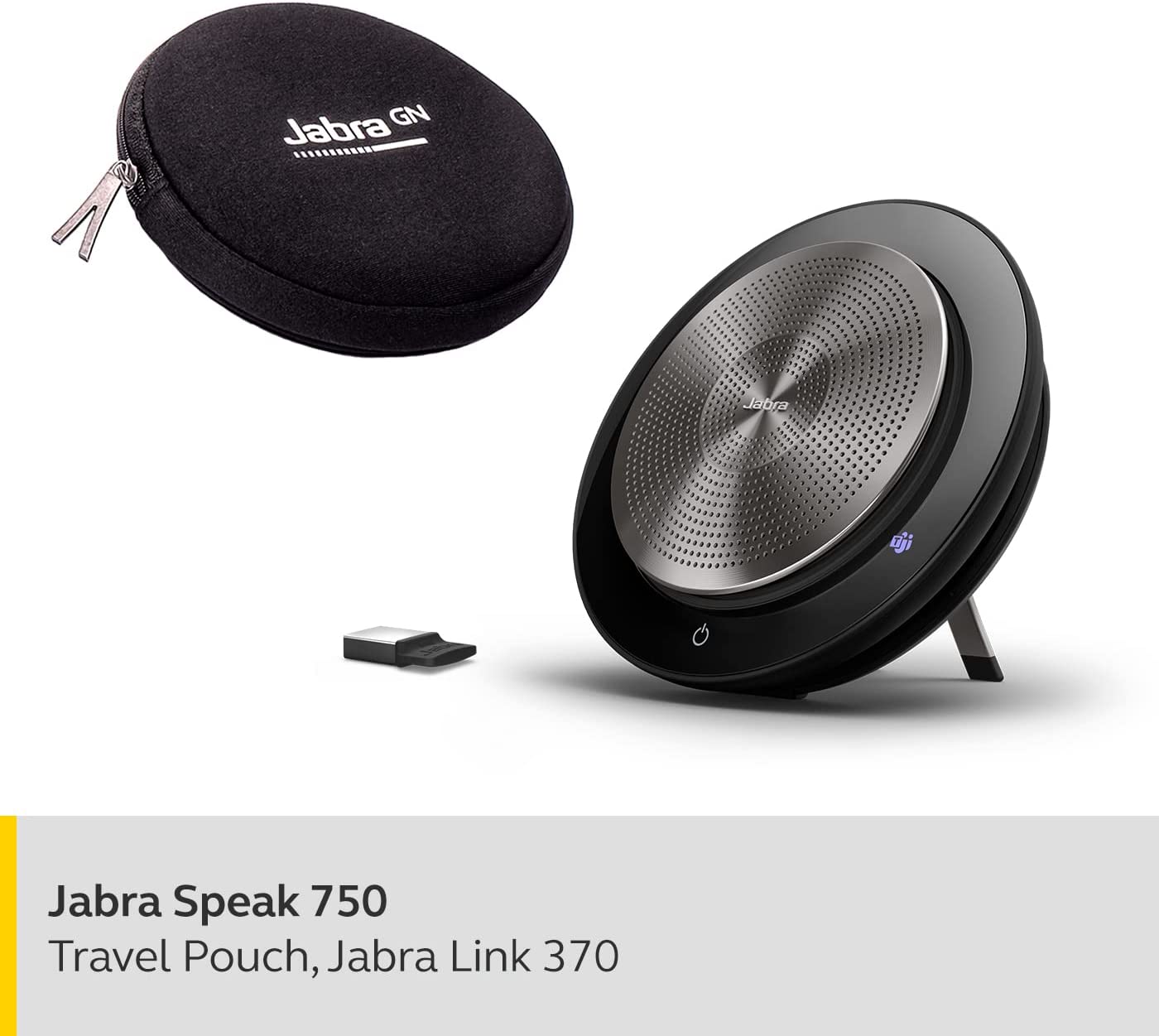 Scope of delivery: 1 x Jabra Speak 750, Jabra Link 370 Bluetooth USB Adapter, lithium-ion battery included, soft pouch, Quick Start Guide leaflet - 120 mm in diameter and 33 mm in height, colour: Black
