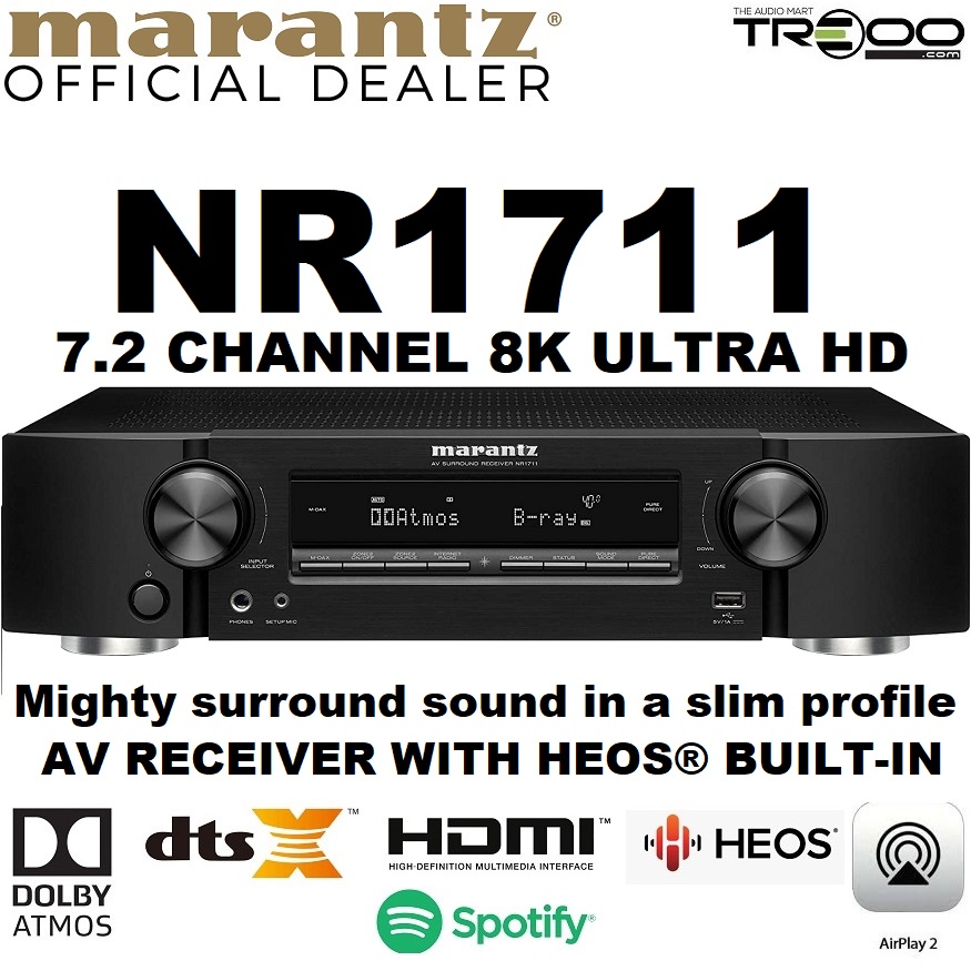 Marantz NR1711 Multi-Room Wireless Bluetooth/WiFi/Ethernet Network Streamer & 7.2 Channel Hi-Fi AV Receiver`