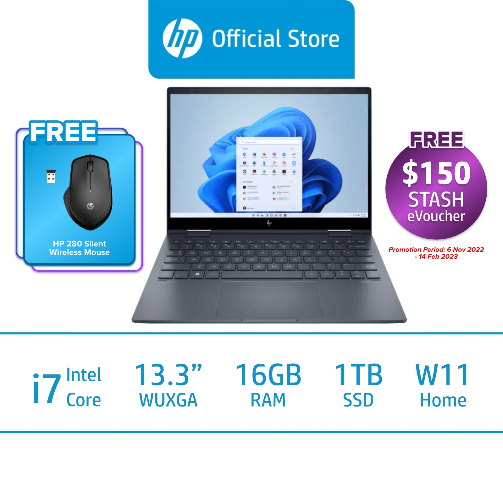 HP ENVY x360 2-in-1 Laptop 13-bf0065TU / Intel Core i7-1250U / Intel Iris X Graphics / 16GB RAM / 1 TB SSD / 2 Years ADD / 2 Years Onsite Warranty