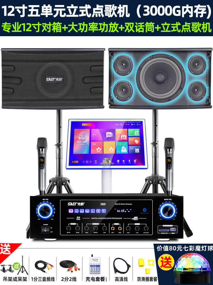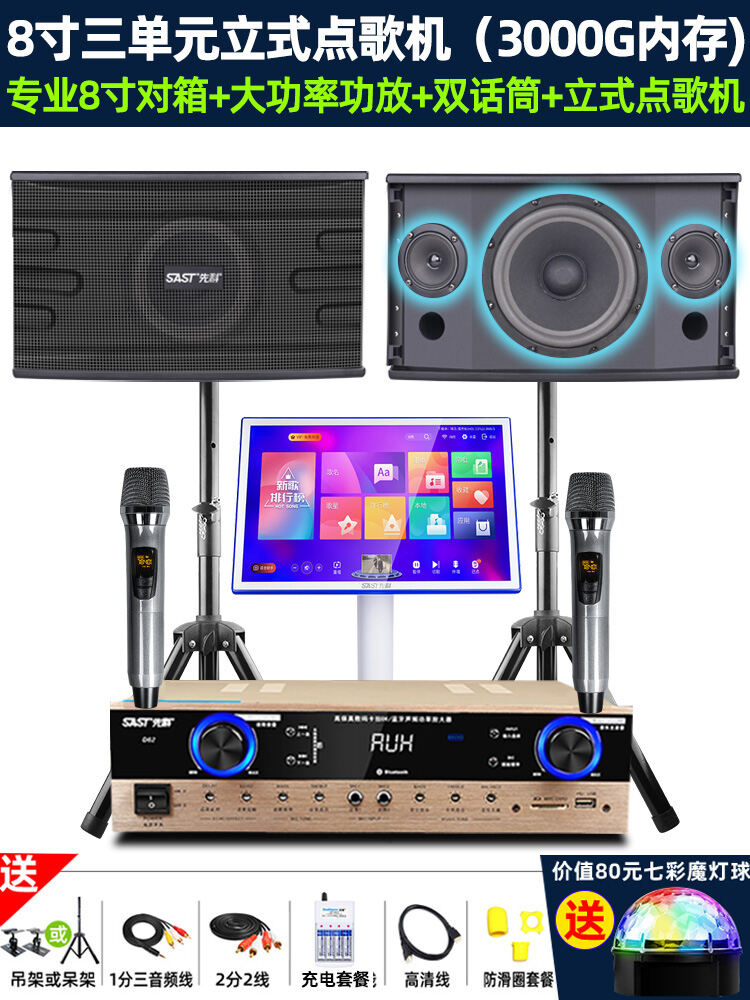 SAST Family KTV Audio Set Karaoke Machine Full Set Home Theater Living Room Karaoke Player All-in-One Professional Card Box Singing System Speaker Amplifier Microphone Special Equipment