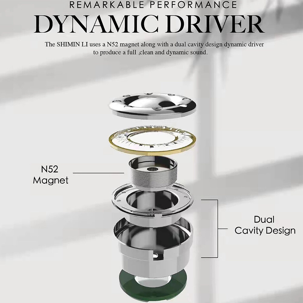 Remarkable performance The SHIMIN LI uses a N52 magnet along with a dual cavity design dynamic driver to produce a full,clean and dynamic sound.