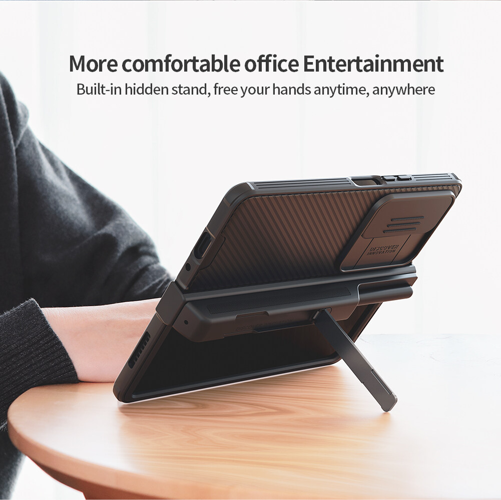 Z Fold 4 - Camshield Pro Version Camera Lens Sliding Cover Protection Shock Resistant Case Casing Impact Anti Scratch Dust Privacy S Pen Holder Hinge Grip Kick Stand Built In Corner Bumper Airbag Matt