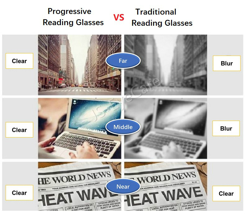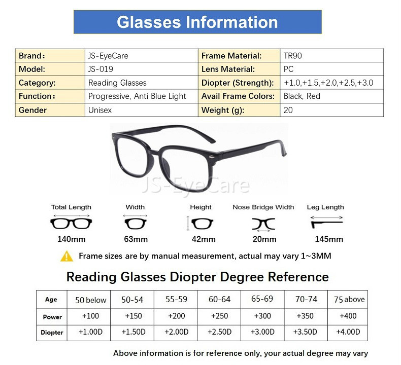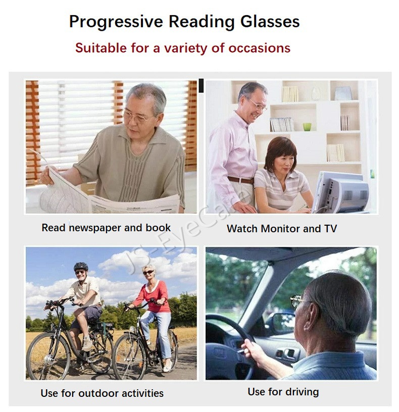 (Gift for Parents) JS-EyeCare TR90 Multifocal Progressive Presbyopic Presbyopia Reading Glasses Anti Blue Ray Light Anti Glare Computer Spectacles (JS-019)