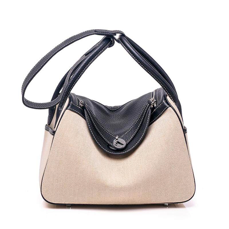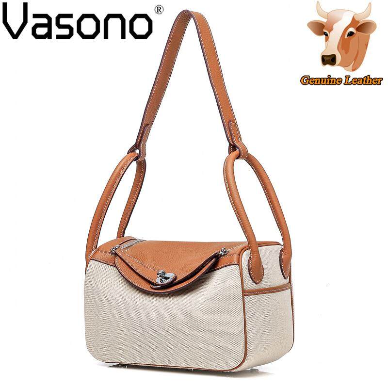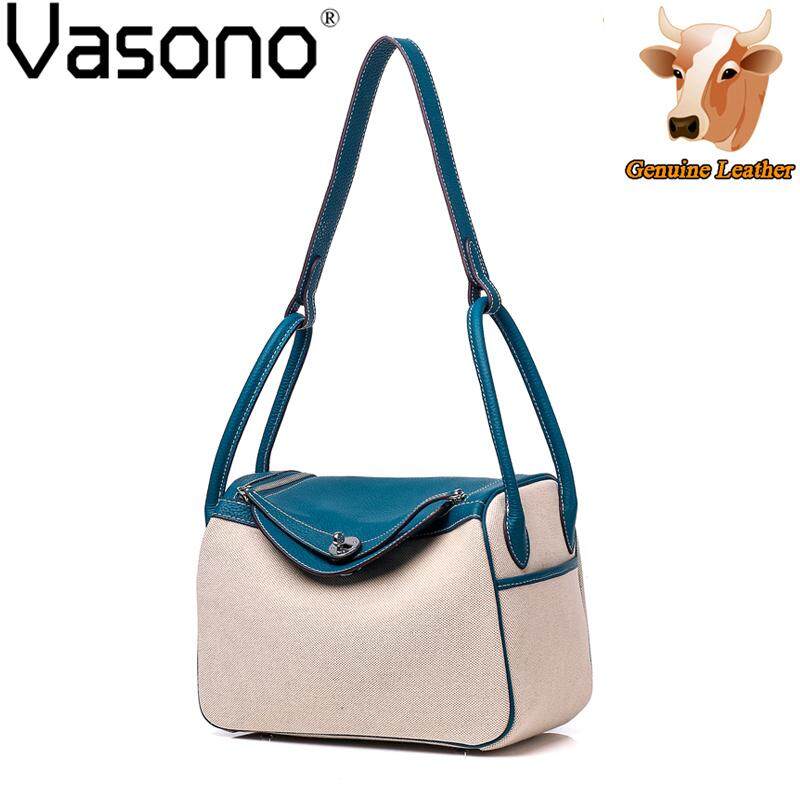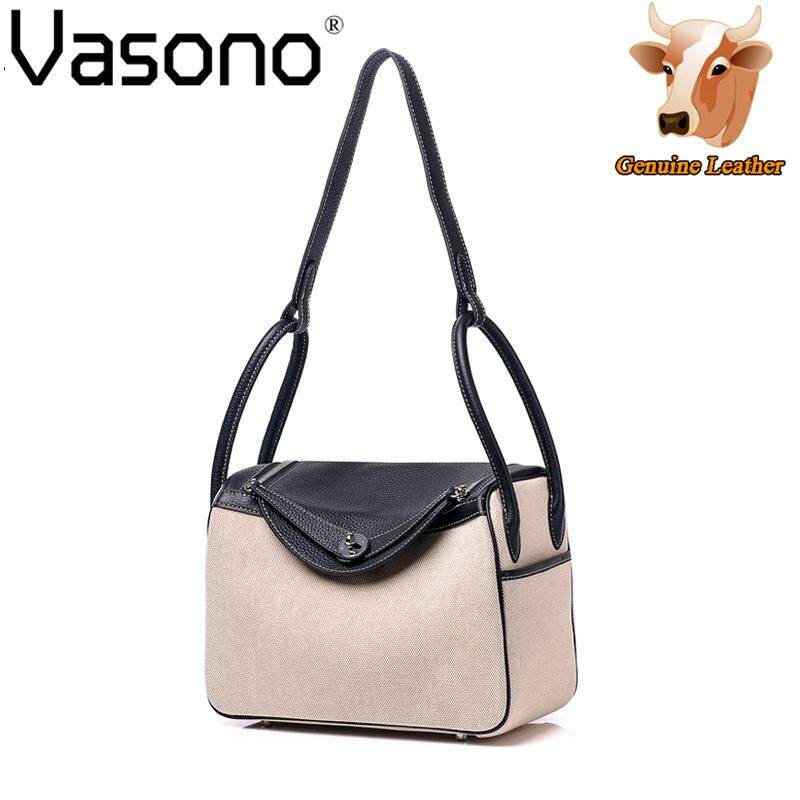Vasono High Quality Top Grain Genuine Cow Leather + Cloth Women Top-Handle Bag Lady Single Shoulder Bag