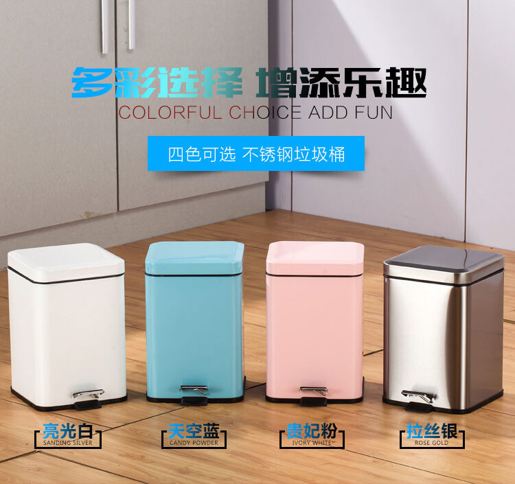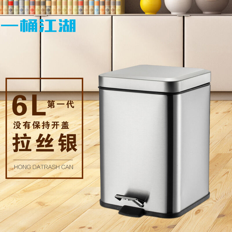 Stainless Steel Trash Can Step-on Kitchen Bathroom Creative Fashion Home Living Room Toilet Bedroom Square Step-on