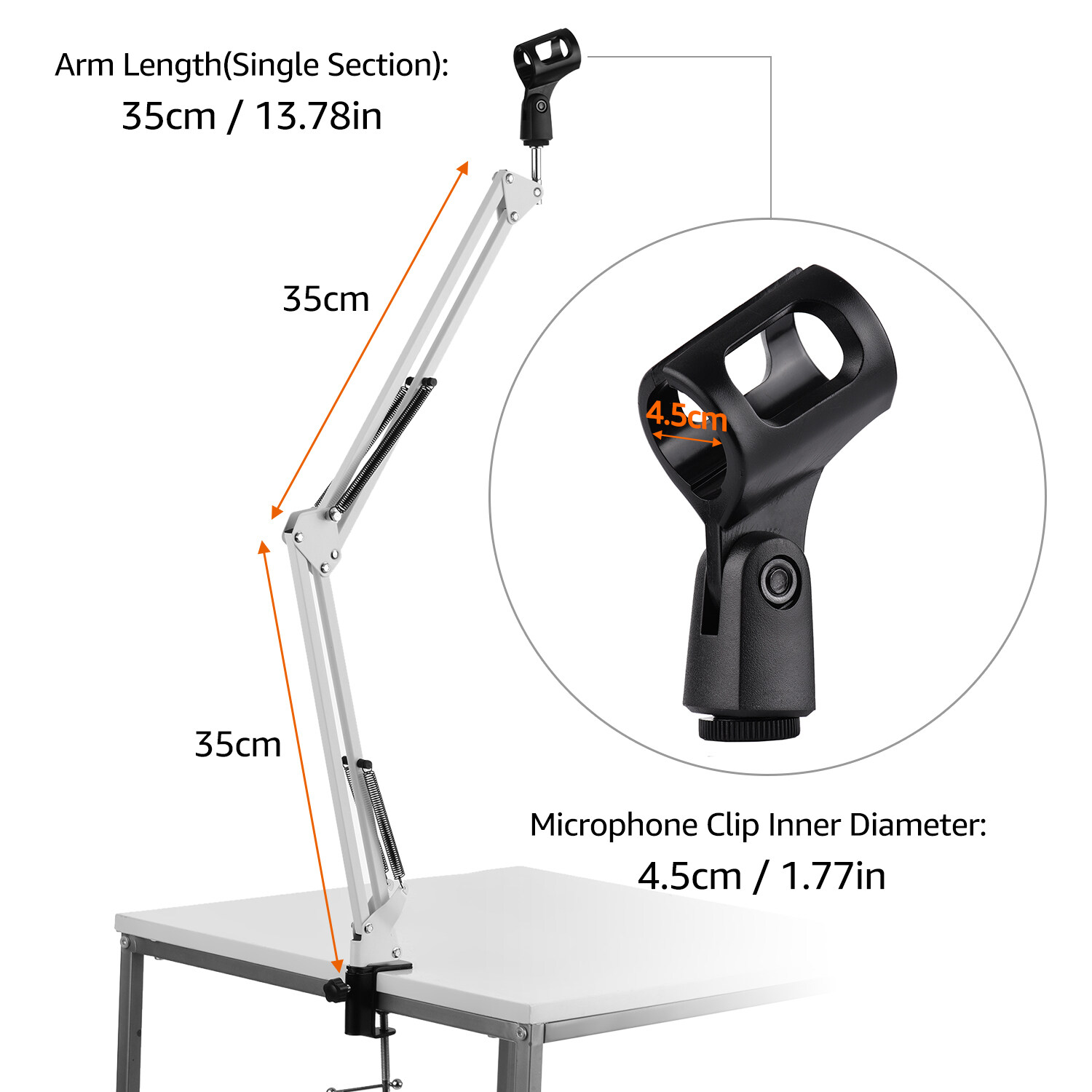 Microphone Clip Inner Diameter: 4.5cm / 1.77in