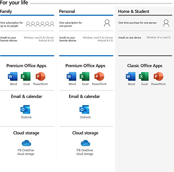 1 TB OneDrive cloud storage per person to back up files and photos